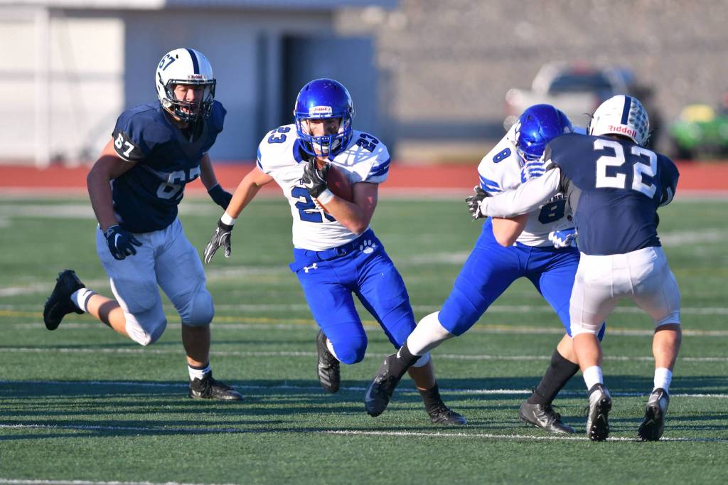 For Bothell (seeded ninth), Ryan Metz scored on a 62-yard interception return; Branden Bird tallied on a 1-yard run and a 42-yard pass from Erik Bainter, who also scored on a 30-yard run; Colin Fisherkeller scored on a 1-yard run; and Riley Morrison found the end zone on a 96-yard pass from Bainter. Mason Locknane hit five PATs.