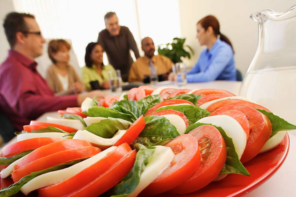 - Eat Well – At Kaiser Permanente, for example, guidelines outline a variety of healthy food options for meetings, considering factors such as fiber, fat and calories. No, you won’t find cookies, donuts or sugar-laden juice on that list, but hearty, flavorful options like low-fat cheese and fresh fruit for breakfast, and a salad bar or healthier sandwich options with lean meats and for veggies for lunch. Satisfy between-meal munchies with selections like fresh veggies with hummus, fruits and nuts, still or sparkling water, low-fat milk, coffee and unsweetened teas.