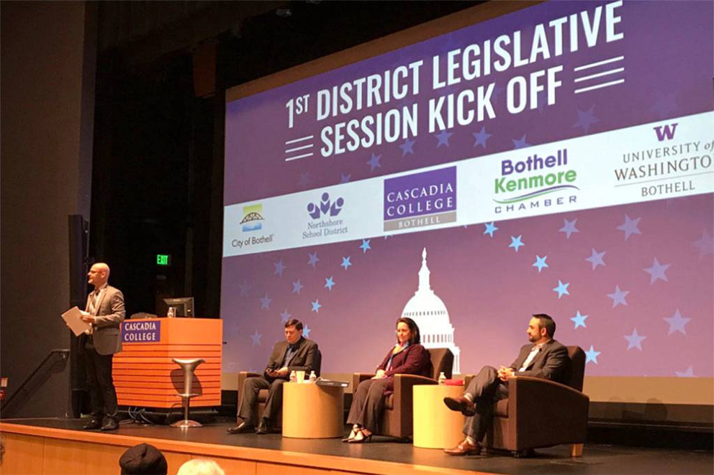 Sen. Guy Palumbo, Rep. Shelley Kloba and Rep. Derek Stanford, all Democrats from the 1st Legislative District, were hosting a question-and-answer session in Mobius Hall on the UW Bothell/Cascadia College campus when an alleged threat emerged.