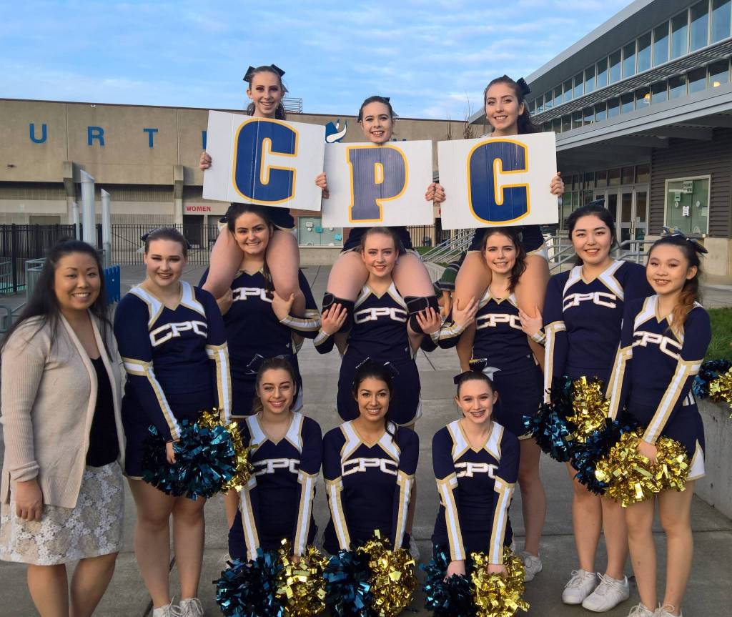 The Cedar Park Christian cheer squad will compete at the state event on Saturday at Battle Ground High. Top row from left to right: Julia Manning, Carly Anderson and Layla Torres. Standing: Coach Dawn Mar, Brianna von Seggern, Carly Macpherson, Ava Standish, Grace Orr, Ivy Kang and Eva Sun. Kneeling: Jillian Keller, Paloma Vizcaino and Tiffany Jameson. Courtesy photo