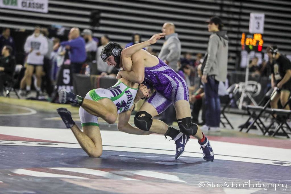 Kendrick battled his way through the consolation rounds with toughness and determination. The highlight of Kendrick’s Mat Classic was a gritty 13-9 victory against Emerald Ridge’s Sean Lightbody on the second day of the tourney. Kendrick, who battled a bloody nose throughout the match, overcame the injury en route to a memorable triumph on the mat. Kendrick also pinned Woodinville’s Nolan Downs in the second round of his opening match of the tourney.