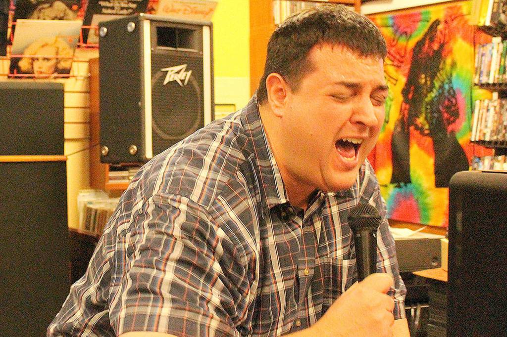 Brandon Yancey, who performs as Ron Hexagon, is an artist from Bellevue. For Record Store Day, he decided to pay tribute to one of his favorite bands, The Rapture. He printed out lyric sheets for the audience and encouraged them to sing, play air guitar, air cowbell and air drums as he danced and lip synced to the music.
