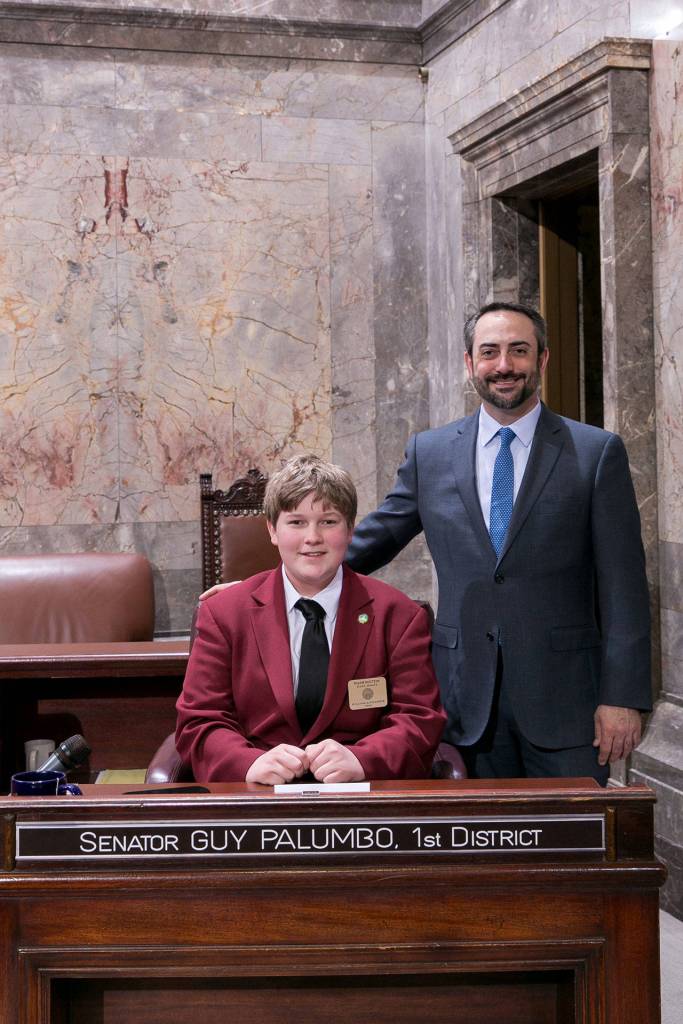 Pages are sponsored by the senator from their legislative district. Sen. Guy Palumbo (D-Maltby) sponsored Alexander’s week at the Legislature.