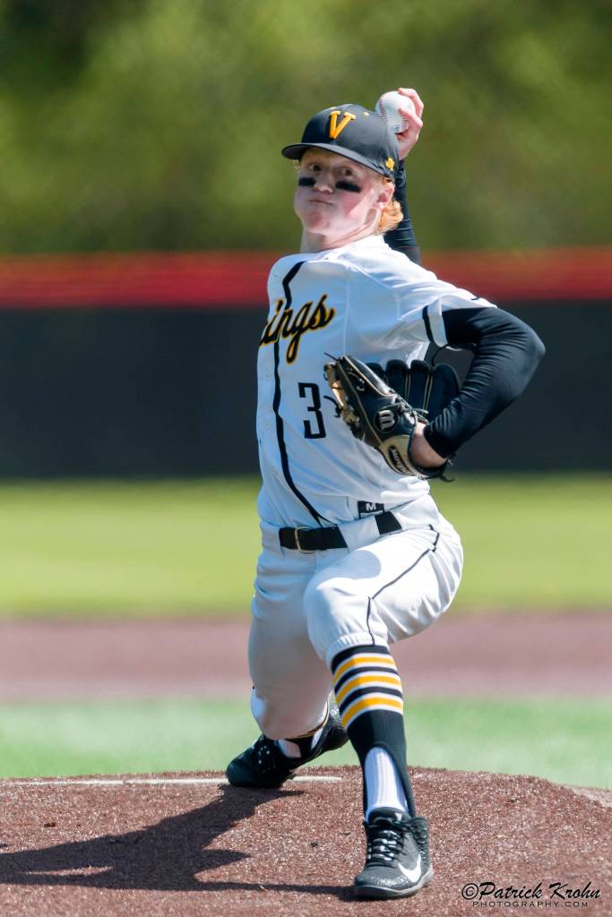 Vikings’ sophomore hurler Kolby Solomon earned the win on the hill, surrendering zero runs while scattering seven hits in six innings of play. Junior pitcher Zach Hedge pitched the final inning for the Vikings. Solomon got out of a bases-loaded jam in the top of the second by striking out Jackson hitter Case Matter for the final out of the inning. Solomon allowed two consecutive hits in the top of the third but got the next three batters out to escape the inning unscathed.