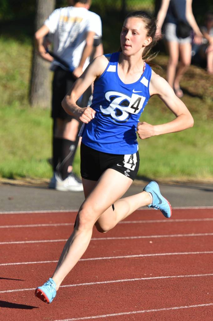 Bothell High’s Estera Levinte blasts to a first-place finish in the 400 run in 58.32 at the 4A KingCo championships at Lake Washington High. Other local winners were North Creek’s Sarah Kovich in the 100 hurdles (15.72) and Natalie Holmer in the javelin (131-11) and Inglemoor’s Abby Kauffman in the 100 (12.70) and long jump (16-11), Kincaid Schmitt in the long jump (20-01.50) and Erica Swift in the triple jump (36-07.50). Photo courtesy of Greg Nelson