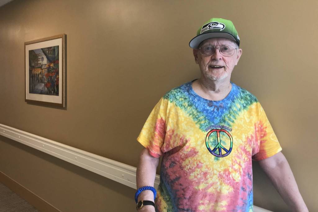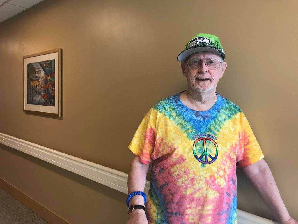 We’re at the Skyline Retirement Community in Seattle and he’s telling me about his art. As someone who was born in Centralia and grew up in the area, it’s no surprise that he likes to paint landscapes — specifically trees.
