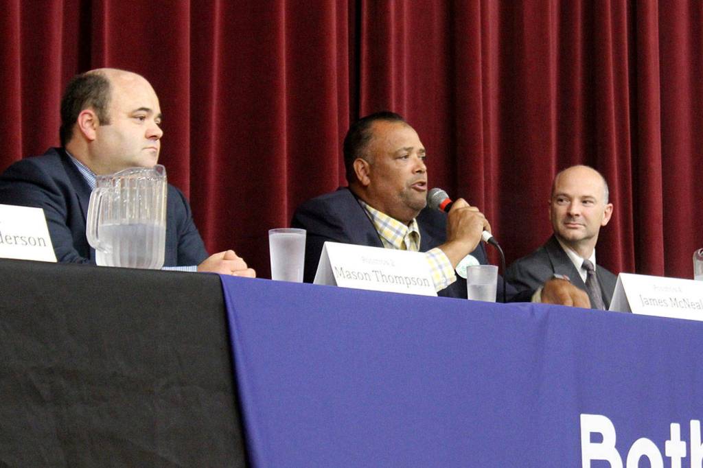 Included on the panel were candidates Mason Thompson and Leigh Henderson (Pos. 2), James McNeal and Matt Seymour (Pos. 4), and Davina Duerr and Sean Palermo (Pos. 6). Duerr and McNeal are incumbents. The remaining candidates have not previously run for a council position.