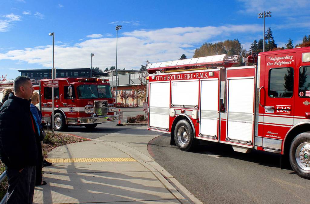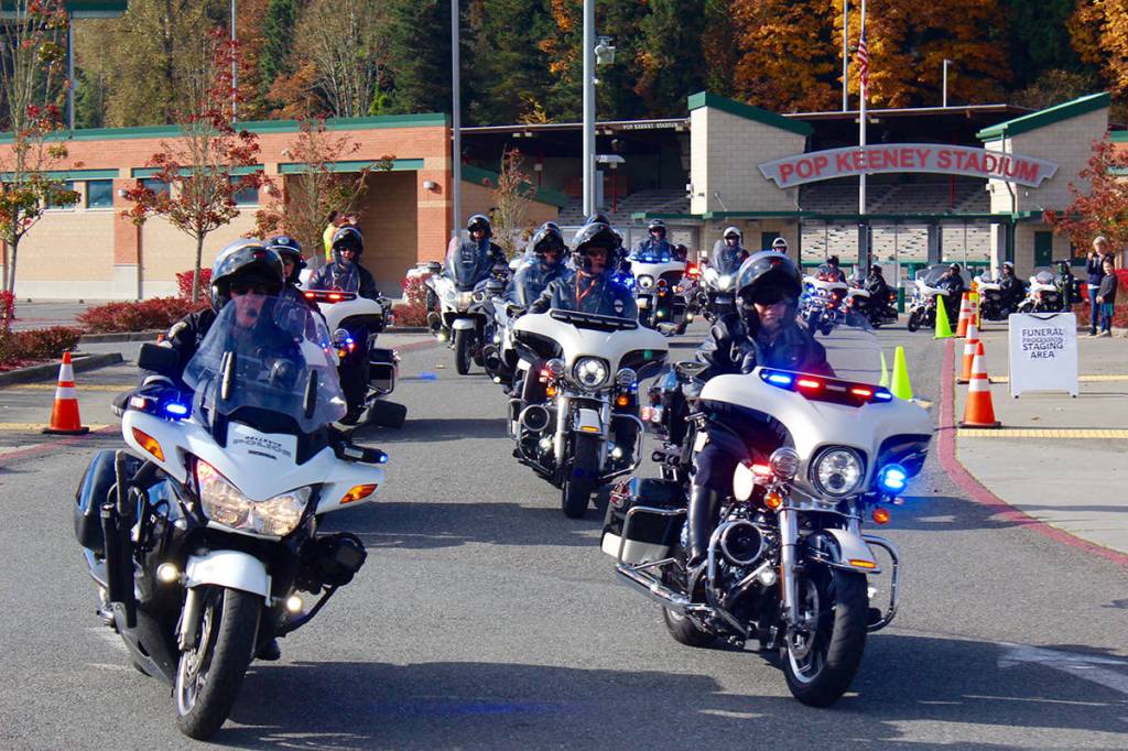 The procession comprised a motorcade that traveled from Bothell’s Pop Keeney Stadium to Redmond’s Overlake Christian Church, where Robinson’s funeral was held. According to a Bothell Fire Department press release, about 50 police department vehicles and 29 fire department apparatuses encompassed the motorcade.