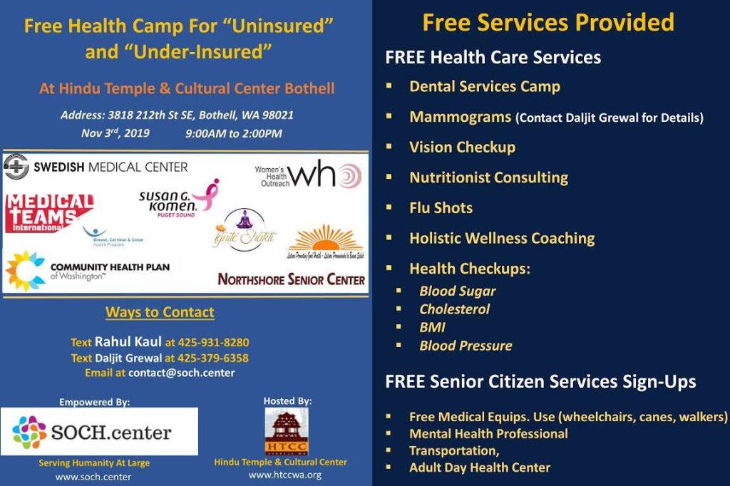 SOCH hosts free health camp in Bothell Nov. 3