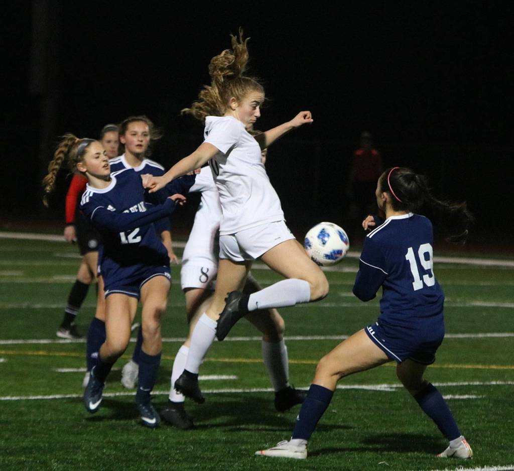 A laughing junior forward Ashly Berge added: “Paris has been coming in clutch a lot recently. These last two games against Lake Stevens and now this game, 1-0, so I wasn’t surprised that she put it away when she had to.” Berge — the 4A KingCo offensive most valuable player — assisted on Moore’s goal against Lake Stevens.