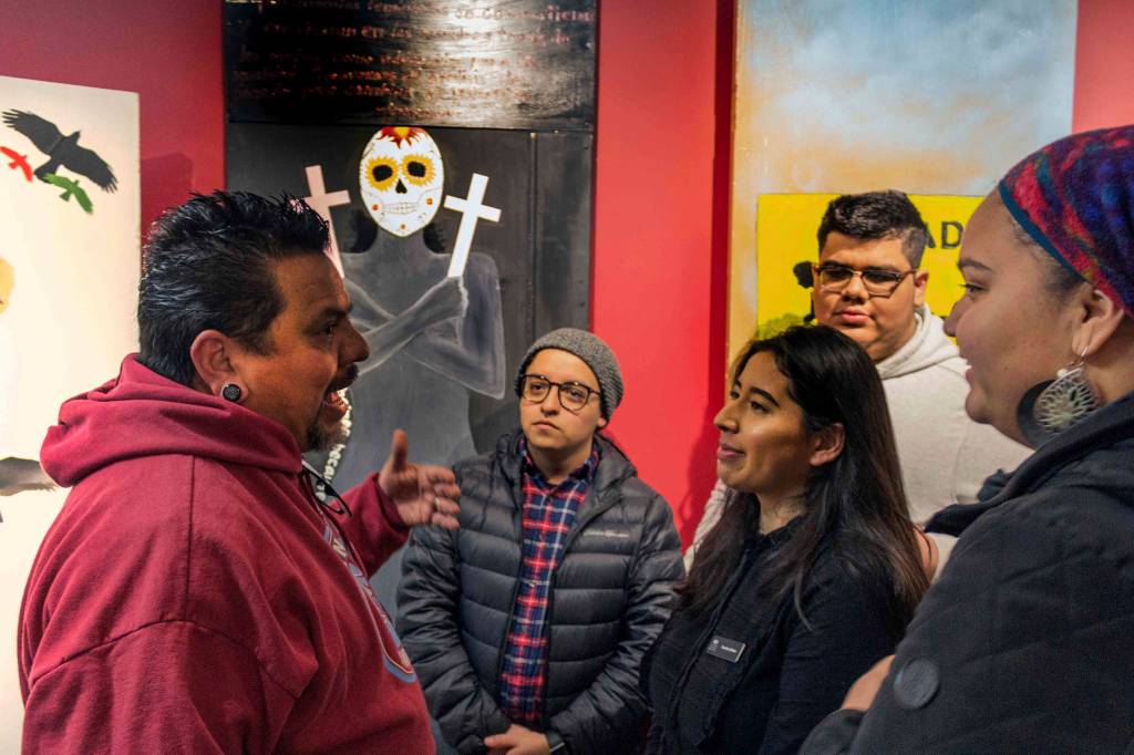 Jesús consulted with Chris Gildow, who is the director of the Mobius Art Gallery at Cascadia, and the two of them began lobbying to get the school to support them economically in bringing the doors to the campus.