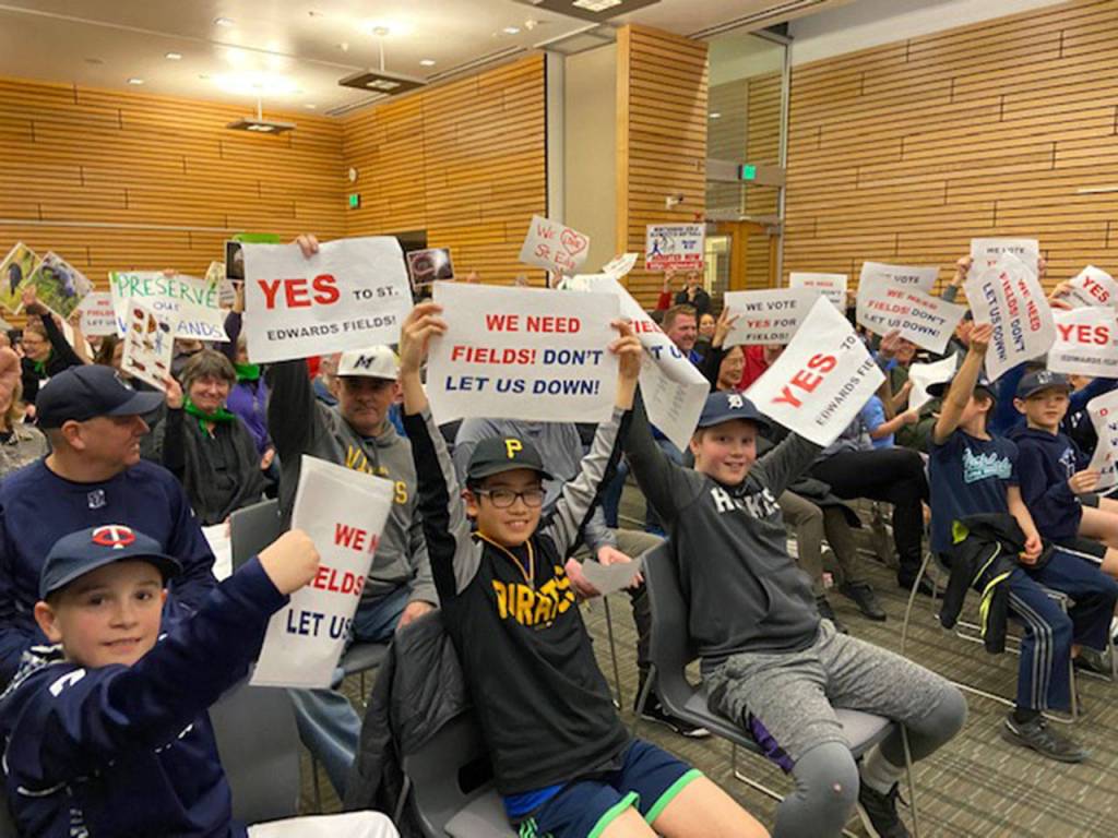 “Please be respectful of each other,” Mayor David Baker, who gave attendees an opportunity to wave any signage for a short, sustained period before requesting it be put away, said before public comment opened. “There are those that don’t want the park developed; there are those who want the ball field. We know this; you know this.”