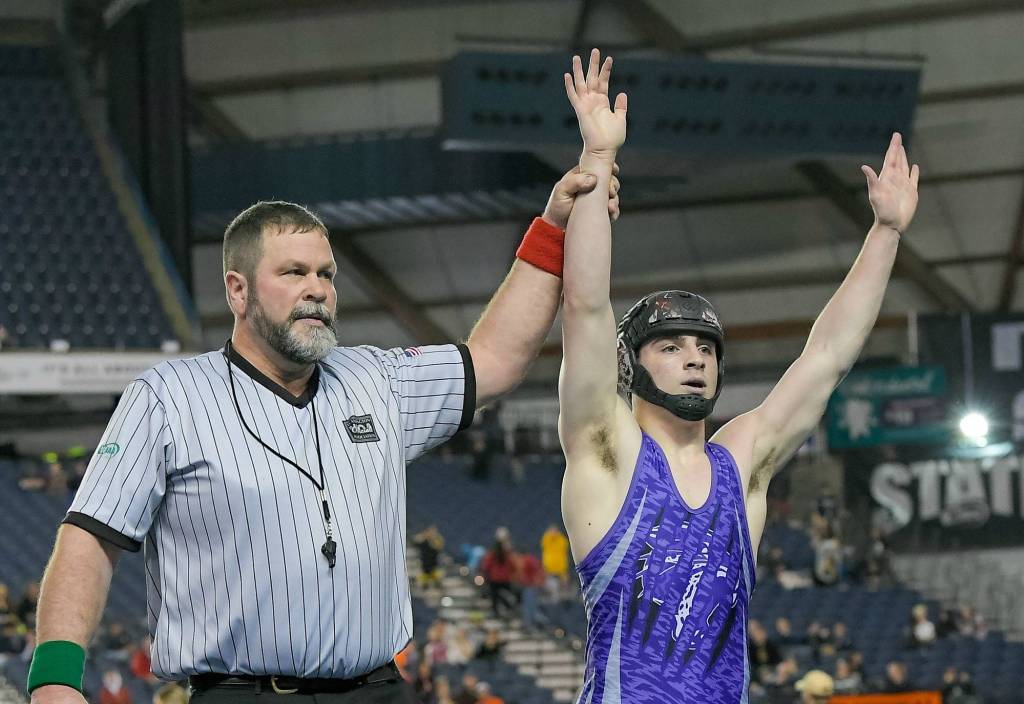 North Creek’s Hunter Tretyak placed fifth in the 145-pound division at the 4A state wrestling tournament on Feb. 22 at the Tacoma Dome. Tretyak defeated Calvin Bahl of Union, 9-1, to take fifth. Photo courtesy of Patrick Krohn