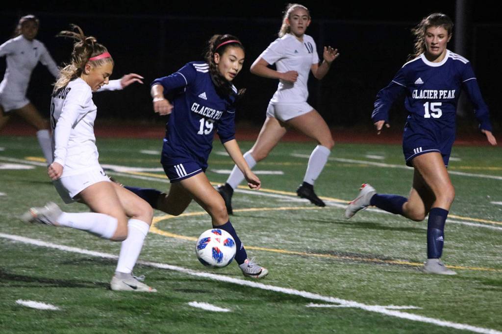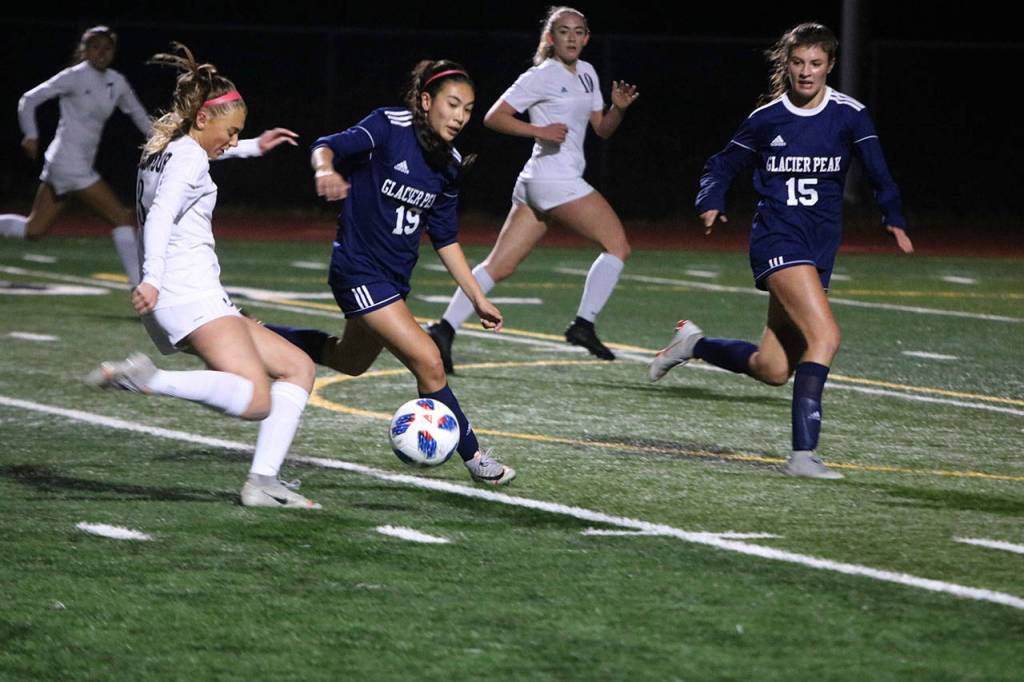 Inglemoor’s Ashly Berge, left, was selected to the 4A All-State Girls Soccer second team by the Washington State Soccer Coaches Association. Vikings Julianna Barker, Julia Monson and Paris Moore were honorable mentions. Andy Nystrom/ staff photo