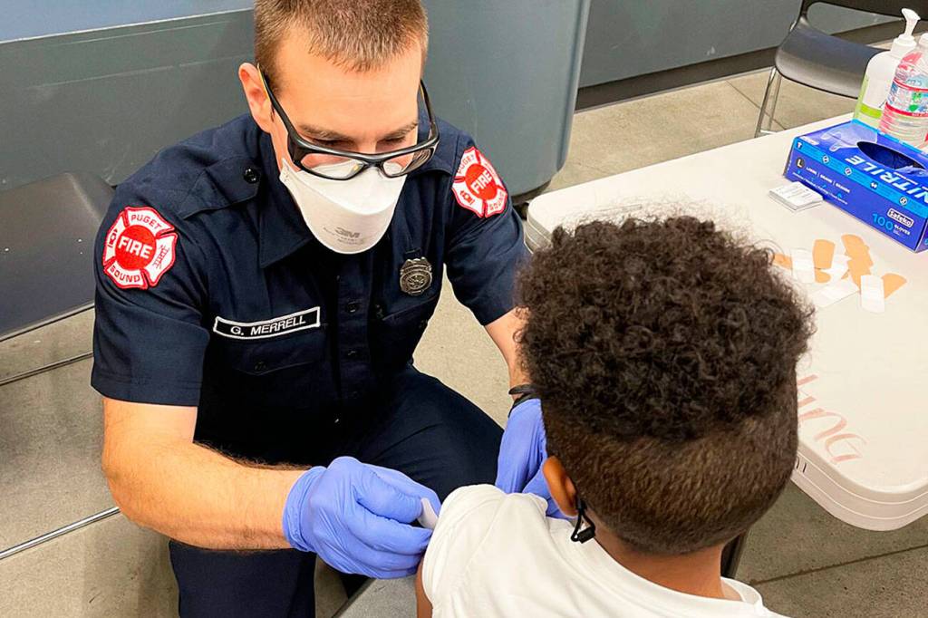 A Puget Sound Fire employee administers a COVID-19 shot Dec. 1 to a Tahoma School District student. COURTESY PHOTO, Puget Sound Fire