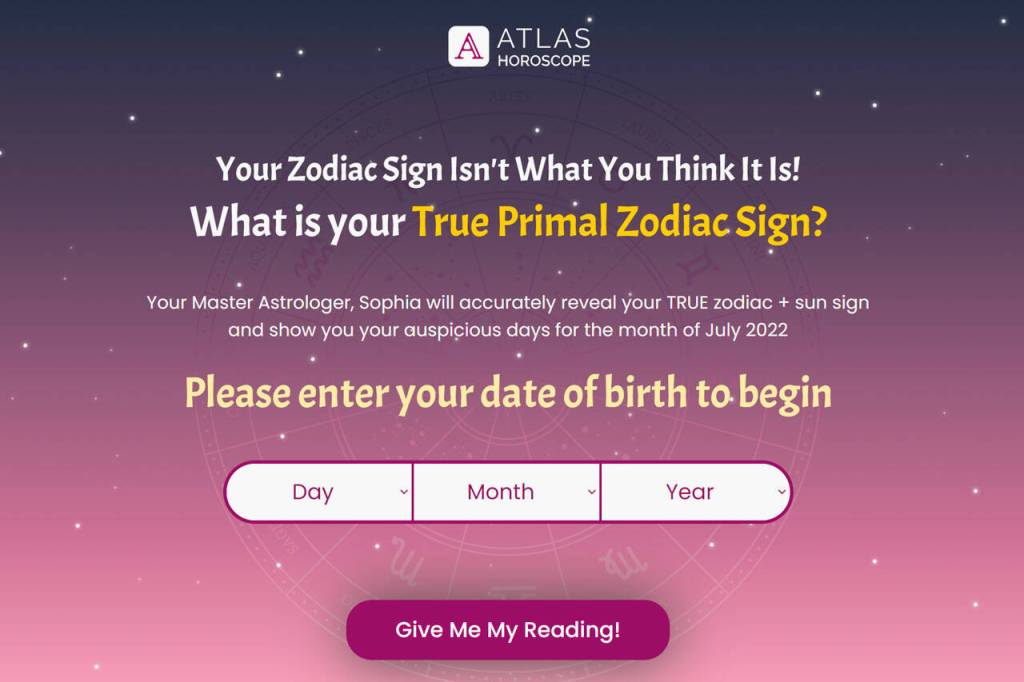 No. Atlas Horoscope is not one of those websites that try to fool you. It does exactly what it promises: give you important dates for the year, your primal zodiac sign, and other vital information about yourself. If you are willing to invest money, though, you can purchase the personalized guide and get access to Sophia, which will give you more insight into how to manifest happiness in your life.