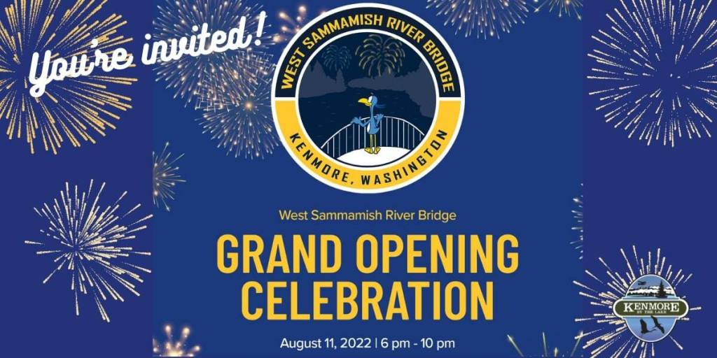 The community celebration will take place on the bridge, and will begin with a ribbon cutting ceremony. Guest speakers include U.S. Representative Suzan DelBene, State Representative Javier Valdez, Bastyr University President Dr. Devin Byrd, and Kenmore Mayor Nigel Herbig.