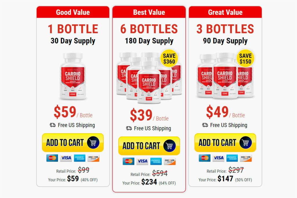 Cardio Shield is sold only through the product’s official website. This means that it cannot be found in pharmacies or online or offline at retailers such as Amazon and Walmart. Moreover, buying from the official website guarantees that the product is 100% original and offered at the best prices: