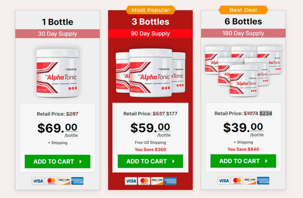 The makers have offered three different packages of supplement so you can choose the one that suits your needs, preferences, and budget. Let’s have a closer look at these packages and their pricing structures as provided on the Alpha Tonic official website: