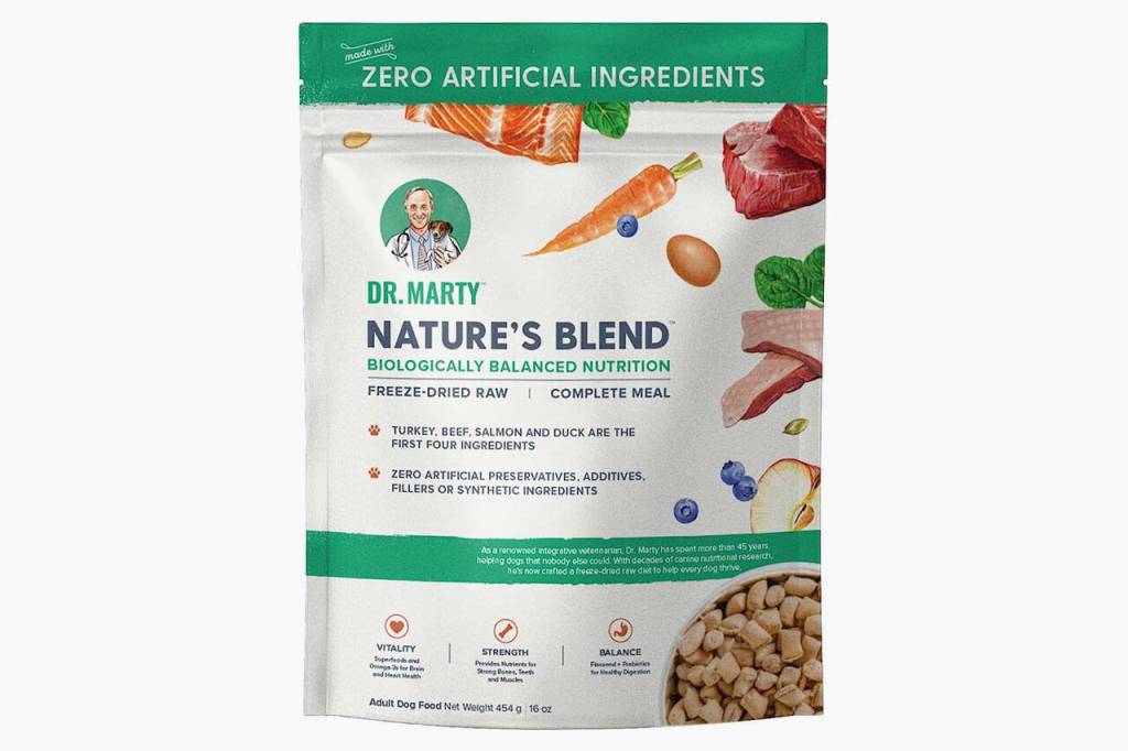 In total, Dr. Marty has seven variations of Nature’s Blend. These also include Radiant Select, which is naturally rich in omega-3s for skin and coat support; Active Vitality for dogs ages 7+; Healthy Growth for growing puppies; Small Breed for small dogs; and Premium Origin, which encompasses grass-fed and wild-caught ingredients.