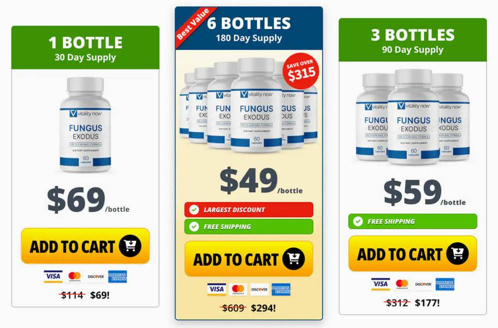 Understanding that each journey is unique, Fungus Exodus offers a range of purchasing options designed to meet your individual needs. A single bottle, priced at $69 plus additional shipping charges, serves as a gateway to experiencing the benefits firsthand. For those committed to the long haul, the three-bottle bundle at $59 each (totaling $177) and the six-bottle bundle at $49 each (totaling $294) not only provide a more cost-effective solution but also eliminate shipping charges, maximizing accessibility.