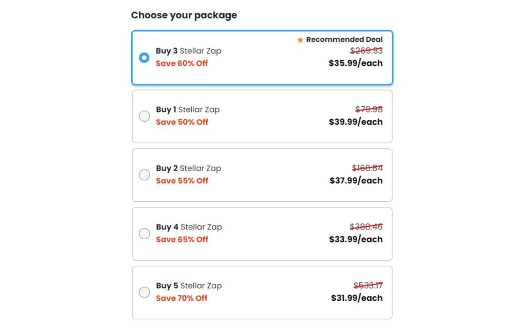 • Buy 3 Stellar Zap for $35.99 each and save 60% off