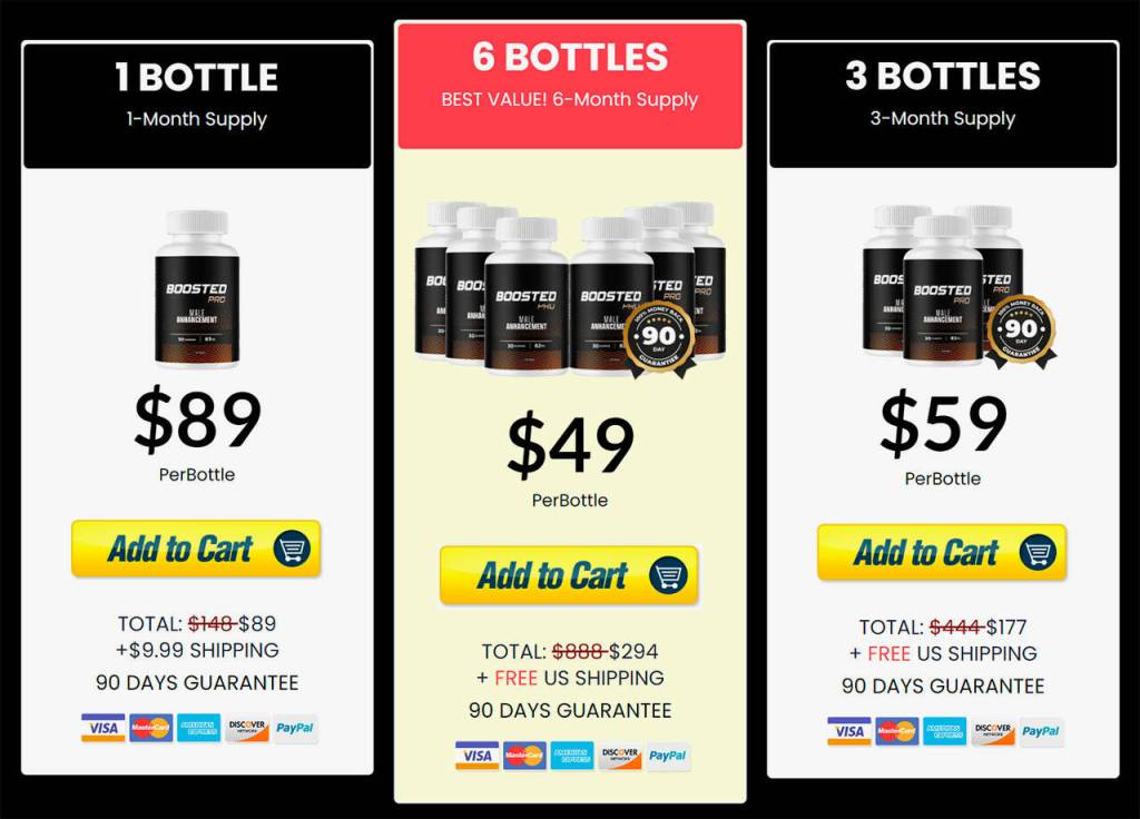 Boosted Pro can be purchased directly from the official website. Buying from the official website ensures you receive a genuine product backed by the manufacturer’s 90-day money-back guarantee. Various package options suit different needs and budgets, with free shipping offered on select packages.