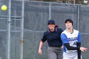 Bothell High shortstop Kate Podany makes a play during a March 9 jamboree game against Lake Washington High.…