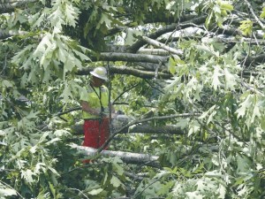 All of the trees on the block next to Bothell Way N.E. were removed Wednesday to make way…
