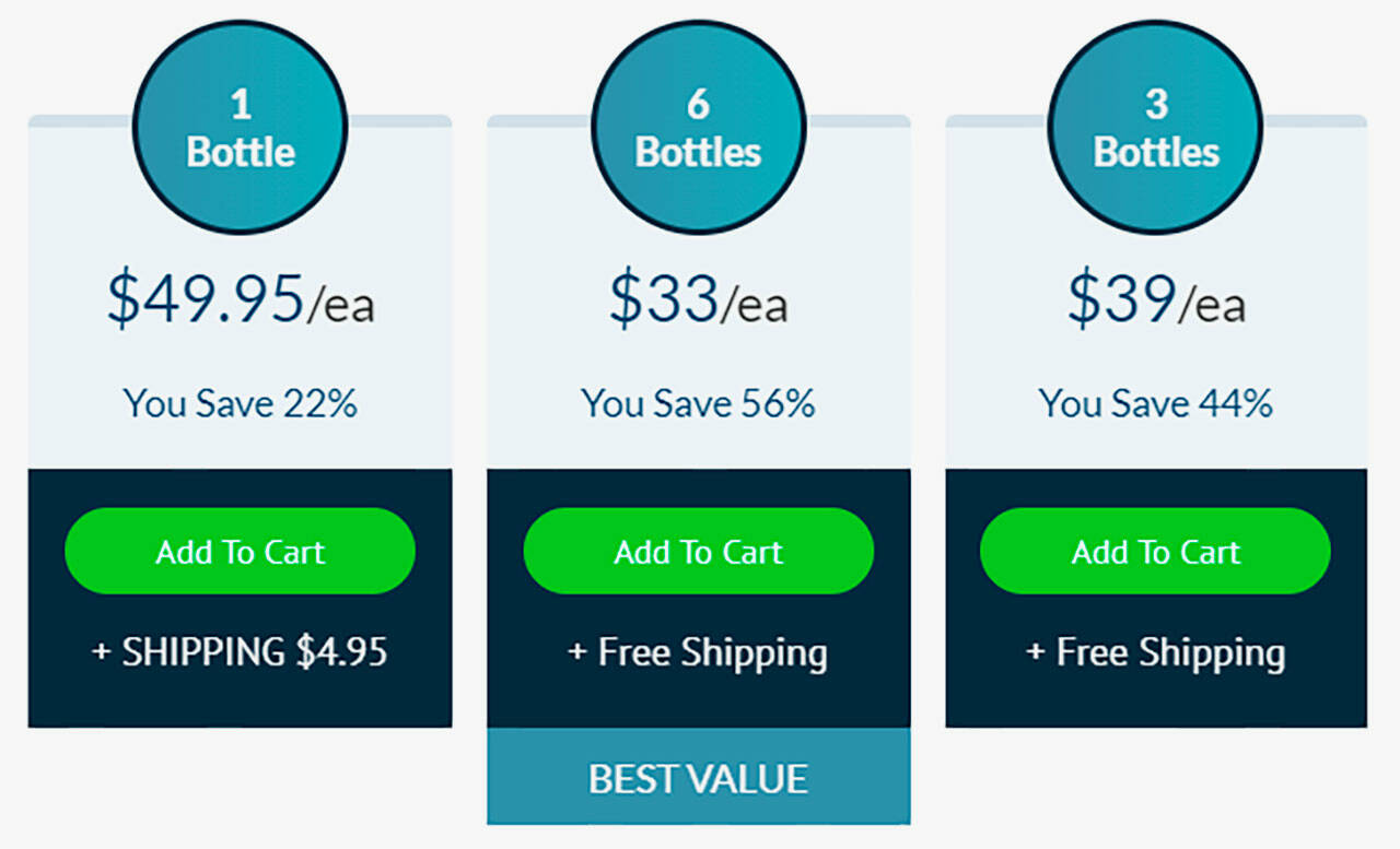 - Pricing: Single bottle – $49, Three-bottle pack – $138.99, Six-bottle pack – $219