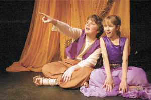 Sam Tacher stars as Aladdin and Theodora Nestorova as Jasmine in Village Theatre’s KIDSTAGE production of “Aladdin Jr.” The play runs April 17-20 at First Stage Theatre
