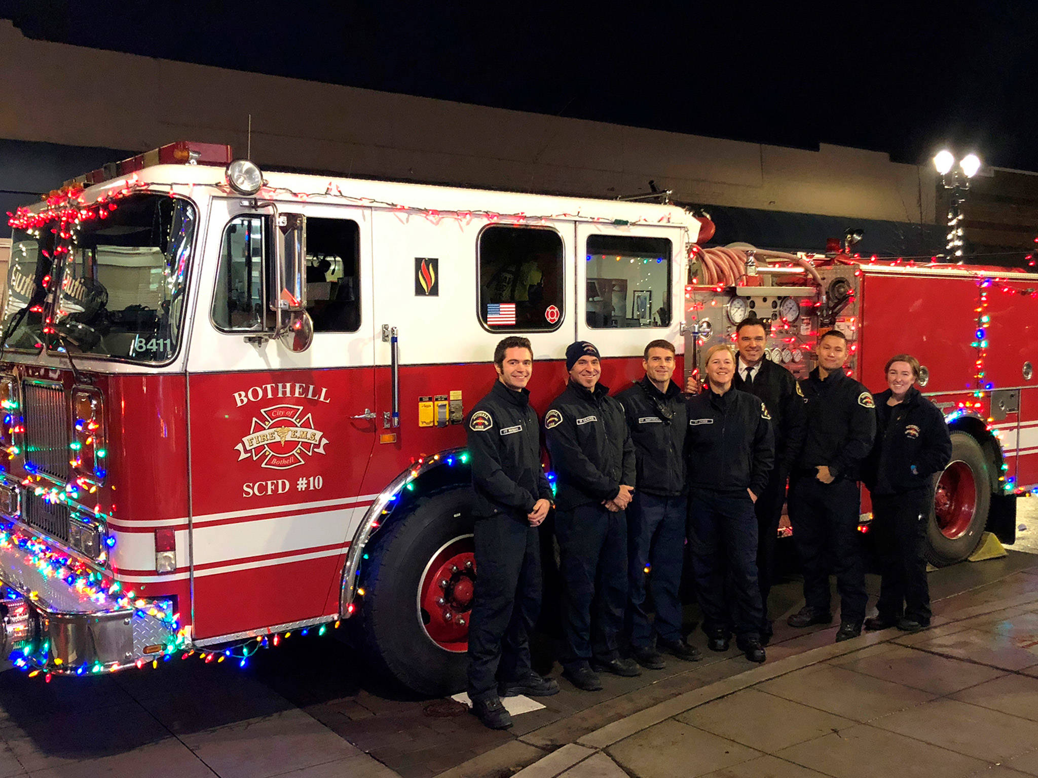 Santa also traveled by fire truck to Bothell’s downtown tree lighting event on Dec. 2. Main Street celebrated with a Holiday Festival of activities, refreshments and the lighting of Bothell’s famous ”Main Street Christmas Tree” — the fir tree on the corner of Main Street and 102nd Avenue Northeast.