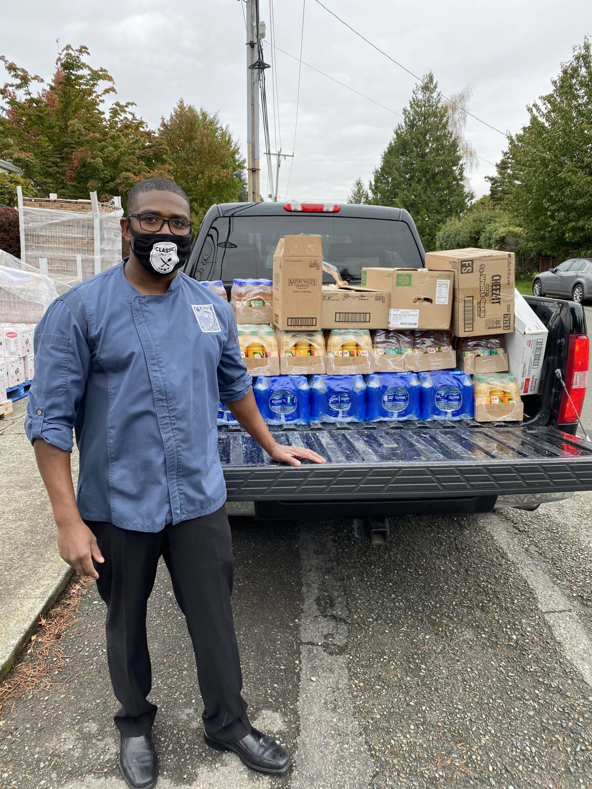 Classic Eats Restaurant owner Tony Hayes distributing food to Highline School District staff. Courtesy photo/Tony Hayes.