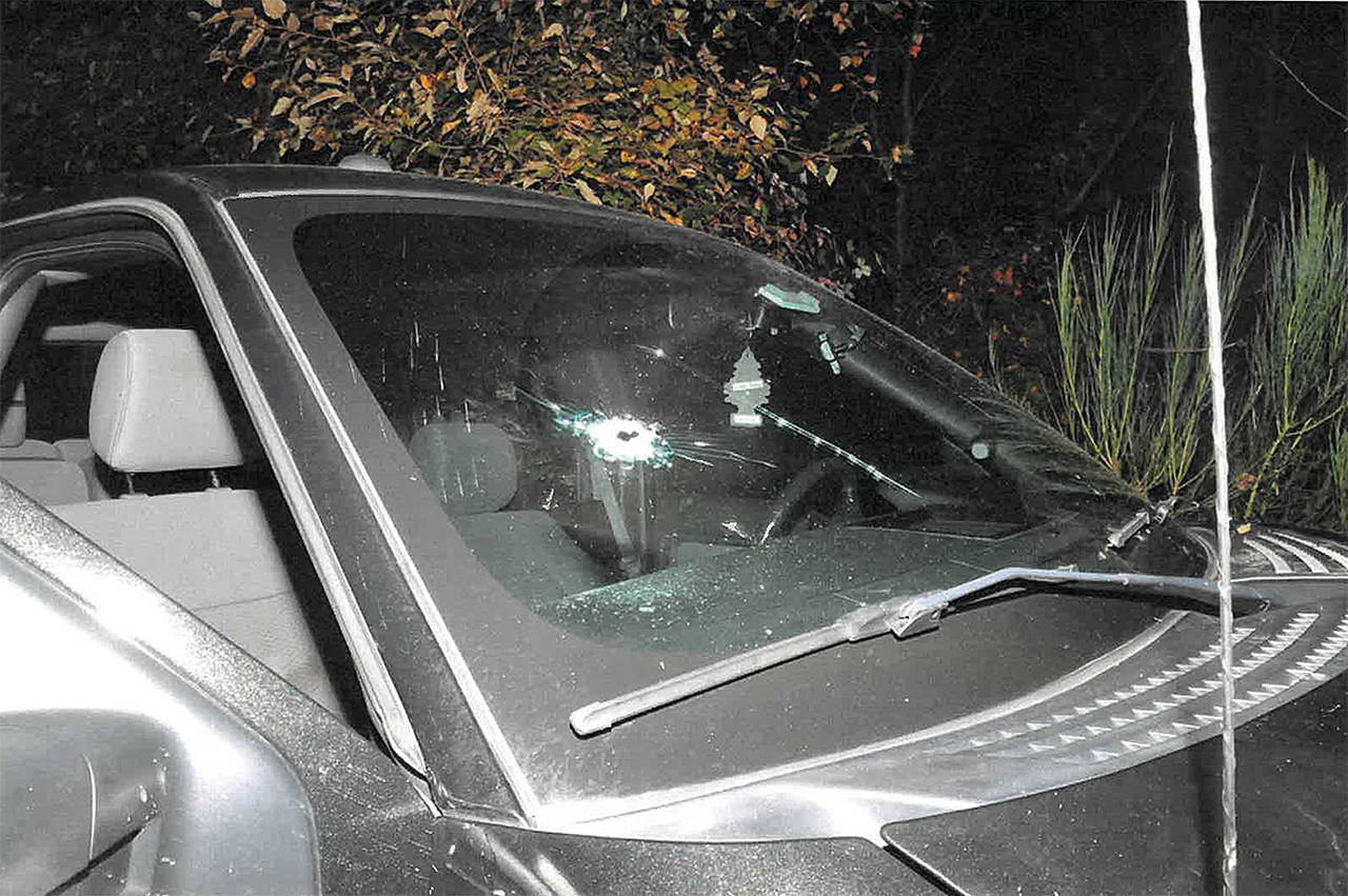A photo from the medical examiner, provided by the law firm, shows a single bullet hole through the passenger side of the windshield.
