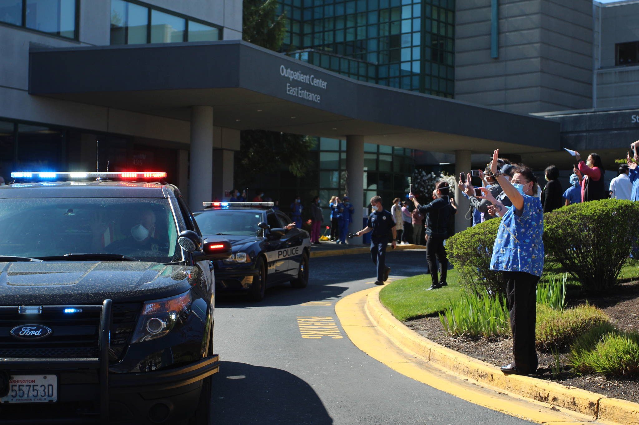 ‘Thank You’ parades were held at 15 hospitals in various cities throughout King County, including Kent-based Puget Sound Fire celebrating workers at the MultiCare Covington Medical Center and Valley Regional Fire Authority honoring employees at the Multicare Auburn Medical Center. Other events were at Harborview Medical Center in Seattle and Evergreen Health Medical Center in Kirkland.