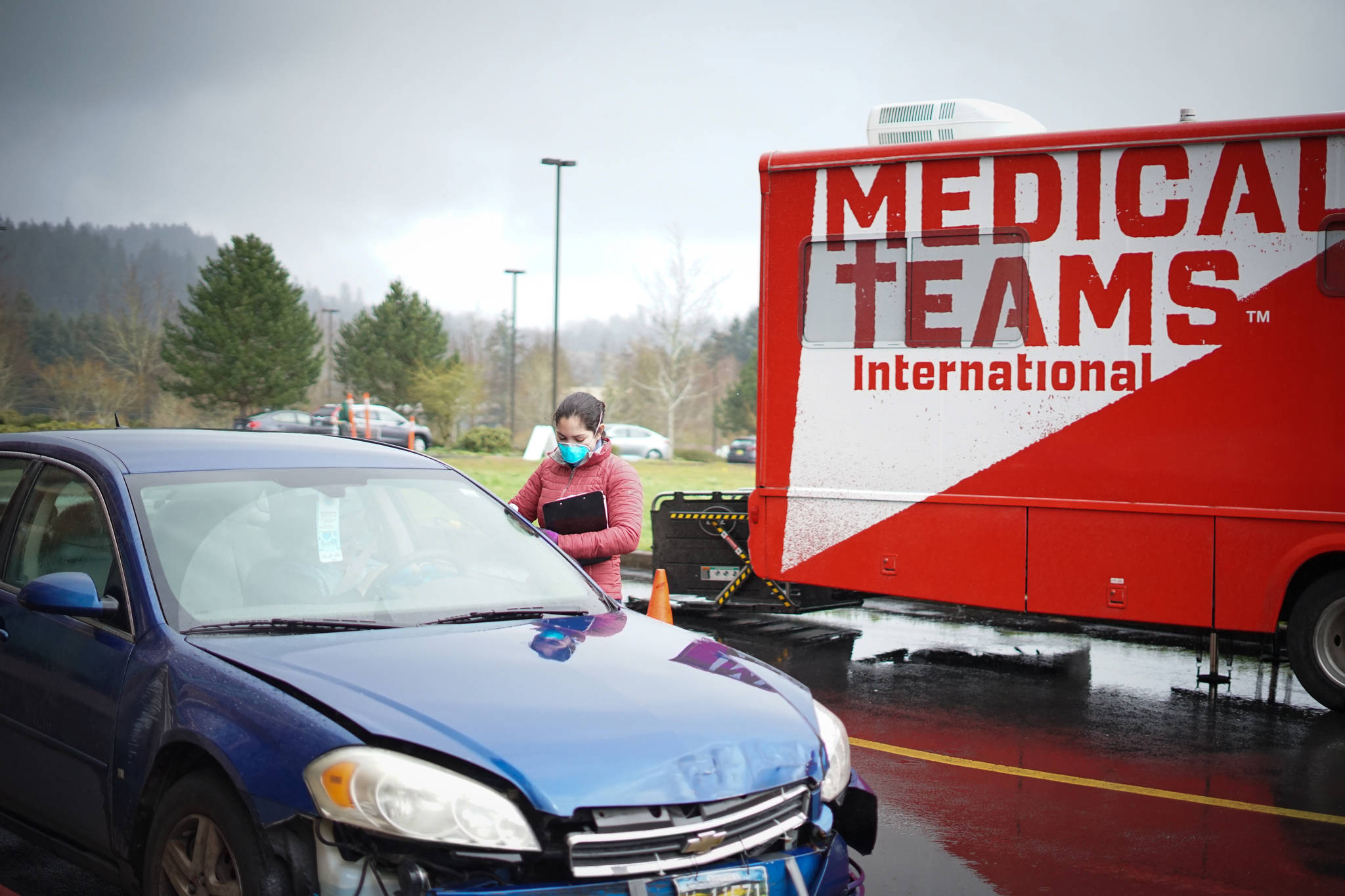 The organization has partnered with Swedish Health Services to set up a drive-by COVID-19 testing site on the Swedish Issaquah Campus, with one of MTI’s dental vans as a command center. The van is similar to the front office of a clinic or doctor’s office where patient in-take and paperwork is handled.
