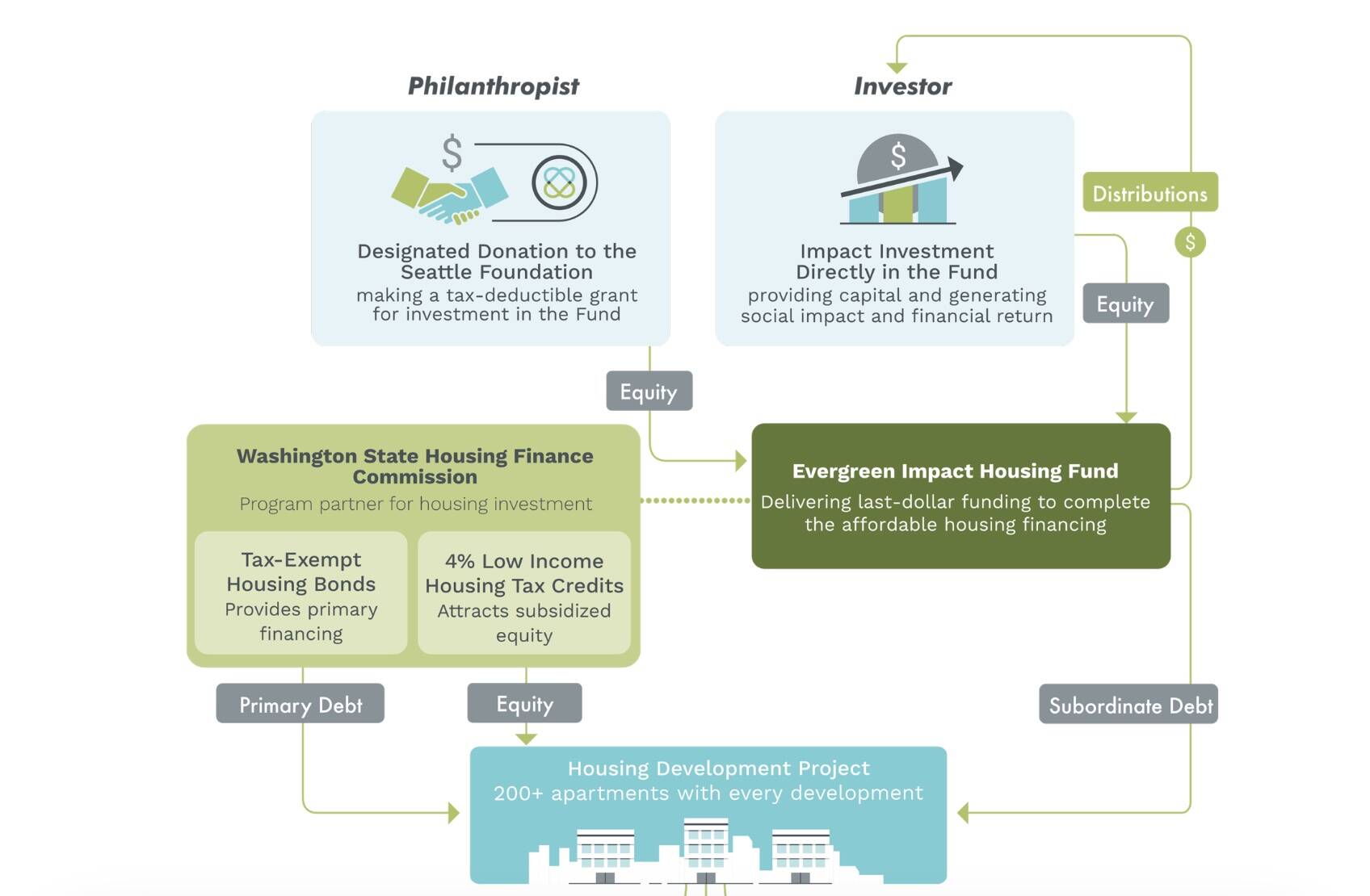 However, the Evergreen Impact Housing Fund (EIHF), an investment fund managed by Seattle Foundation has taken an approach that covers these funding gaps to projects through their first-of-its-kind model.
