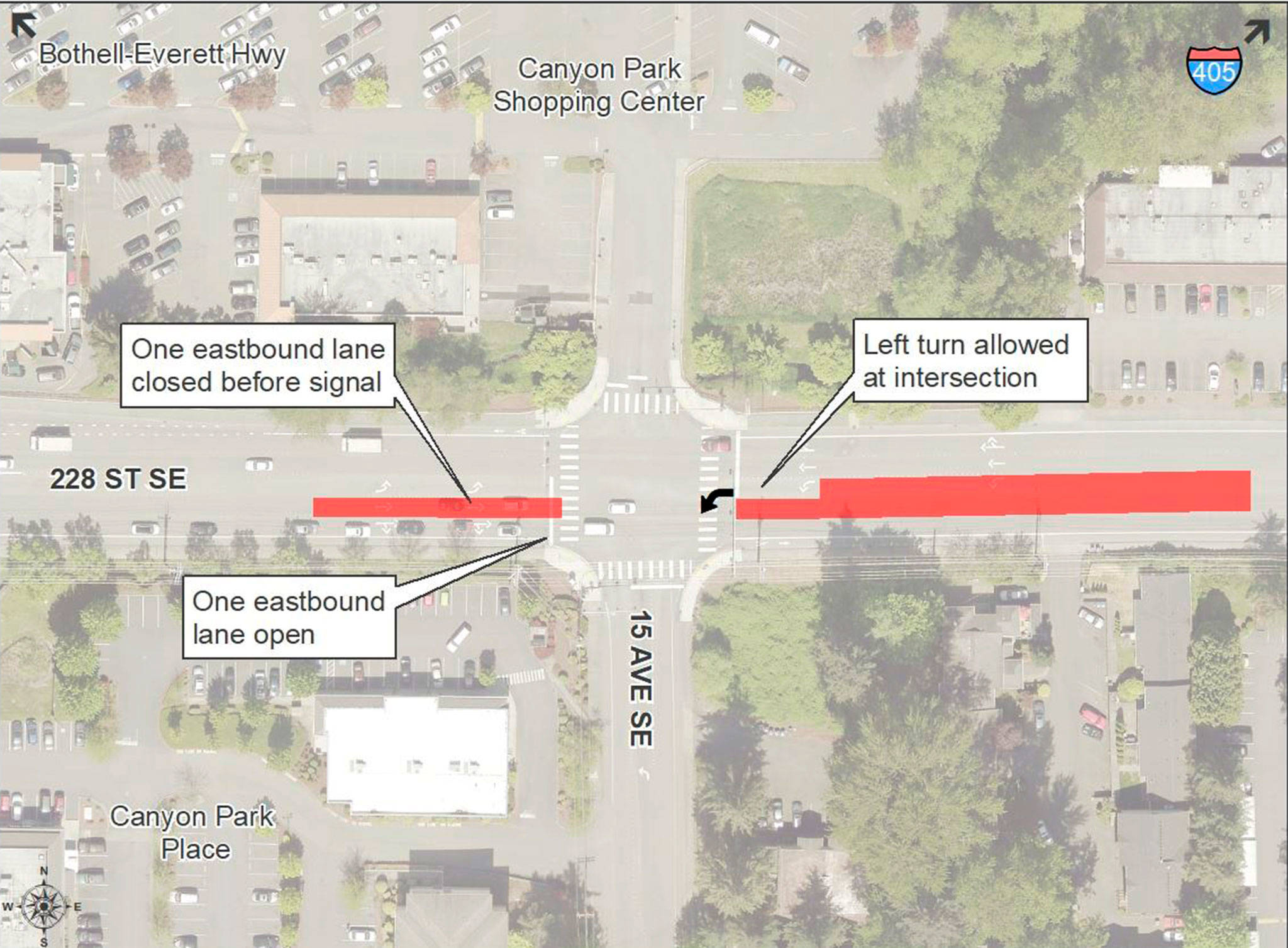 On Jan. 30, the city issued a press release noting that “drivers should plan for delays” on 228th Street Southeast for a short-term construction project, which intended to deal with groundwater and rain that has been “puddling” and freezing in the center of 228th Street Southeast, just east of 15th Avenue Southeast in Canyon Park.