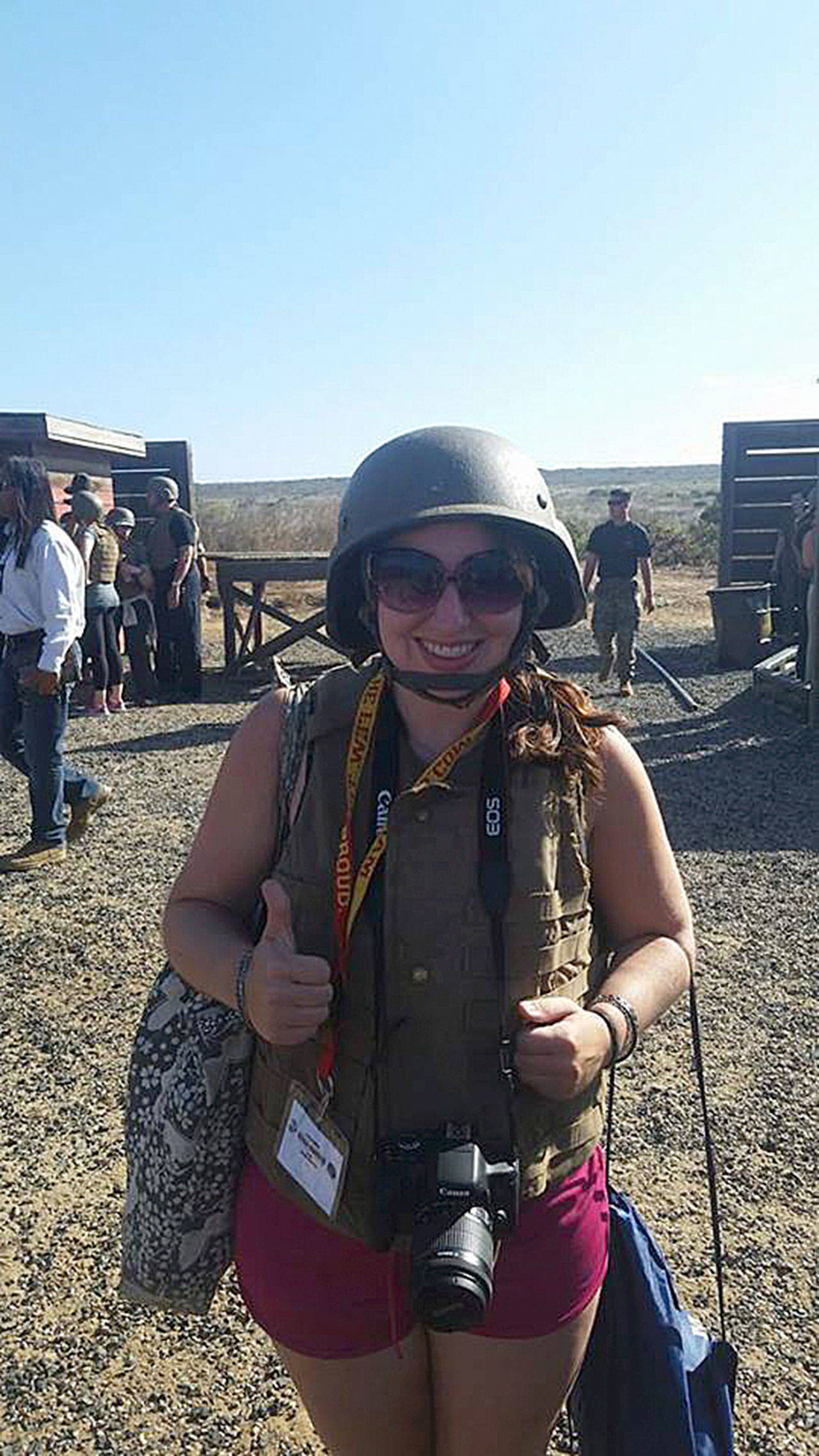Out in the desert in a much hotter, drier heat than our Washington bodies were used to, we acted out the part of recruits and completed the same challenges that they face, such as obstacle courses and a problem-solving simulation. Though I happily put on the helmet and vest that everyone else got (for both authenticity’s and safety’s sake), I initially stood to the side taking photos and video as the teachers simulated carrying a wounded comrade across a rope bridge. As the squadron of teachers carried cans of ammo (30 lbs. each) across a field and back, the sergeants supervising us asked me if I wanted to join. I picked up a can in each arm and ran after them. On the walk back, we were really beginning to feel the 60 lbs. in our arms (even my overpacked suitcase wasn’t that heavy!) so we began singing, “Left — left — left, right, left!” to make the walk go by faster. It was in that minute that I became part of the team. By the time I put the ammo down at the finish line, I was sore, sweaty and shaky, but felt I had made my dad proud.