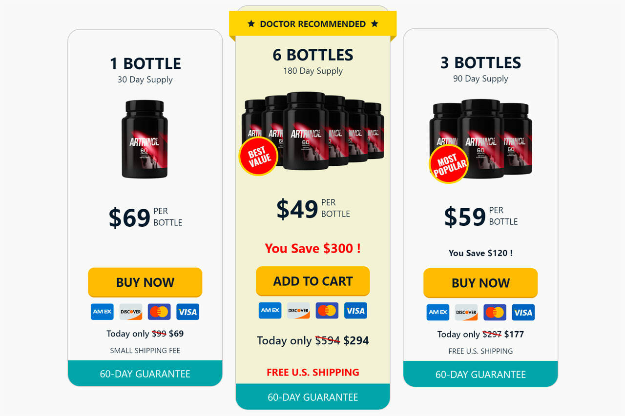 Take a single bottle of Artrinol on promotion and pay $69. That’s a $30 saving off the MSRP of $99.