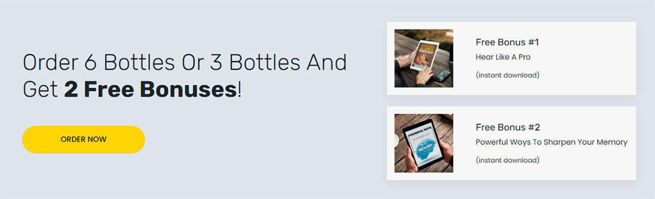 When you order a Cerebrozen three-bottle or six-bottle bundle in the special promotion, you get two eBooks included free in your purchase. These gifts work alongside your Cerebrozen formulation to improve and safeguard your hearing.