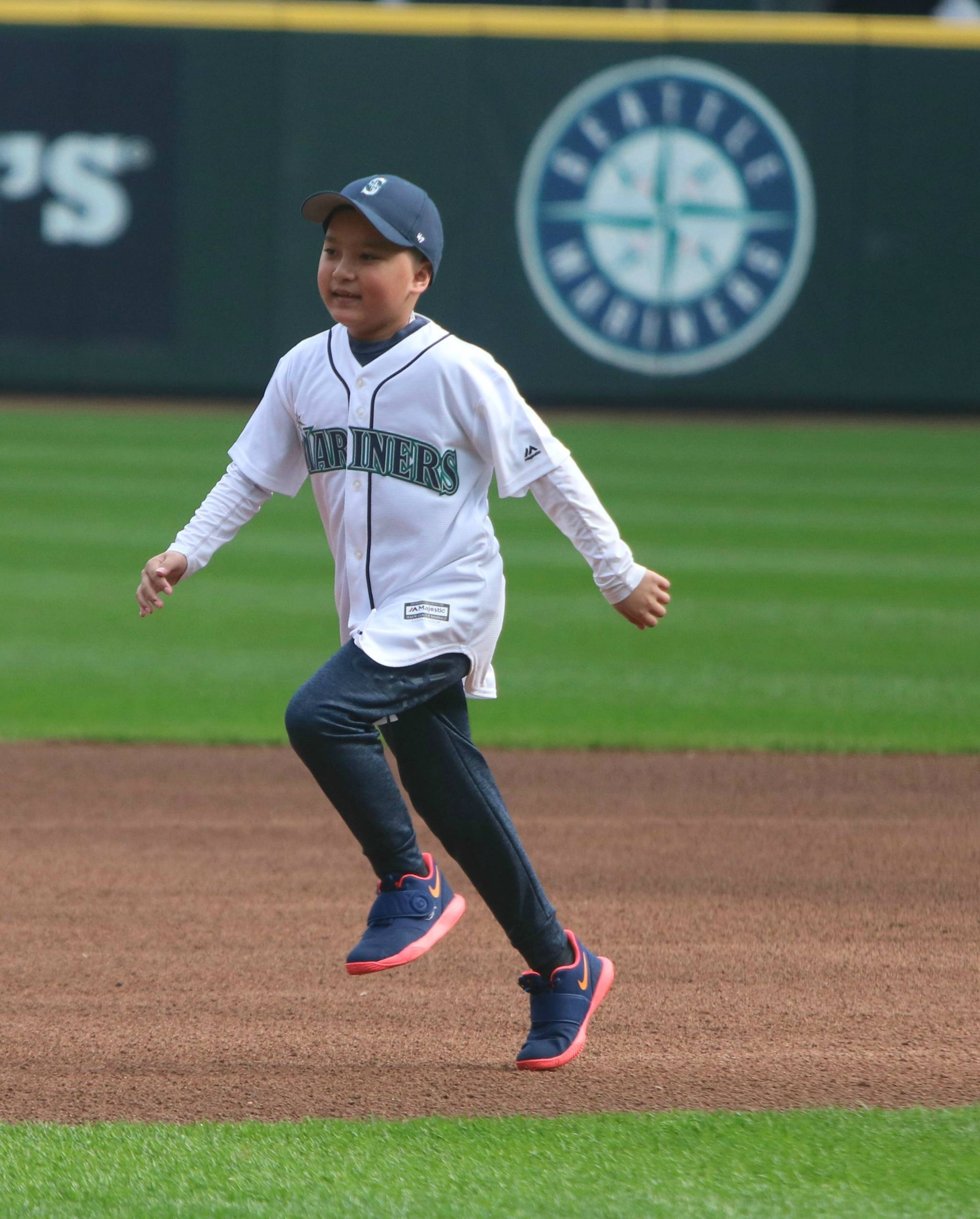 Dakota — who received a Mariner’s jersey with his last name emblazoned on the back and had his name splashed on the mammoth message board — said he felt satisfied with his running on Monday and thought about his favorite M’s Kyle Seager, Felix Hernandez and Dee Gordon during his time on the field.