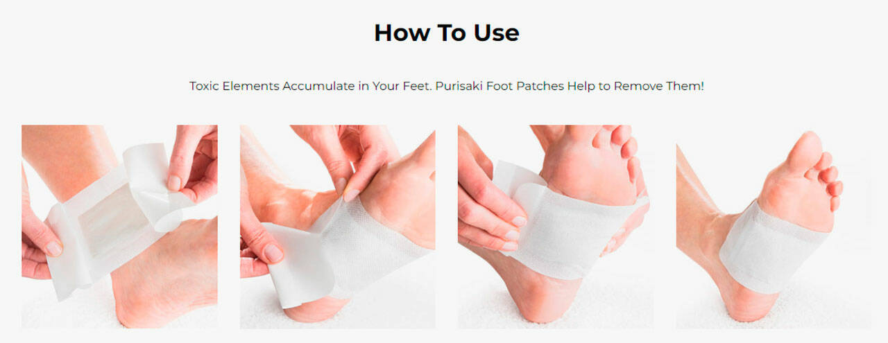 - Step 1) Place the Purisaki Deep Cleansing Foot Pad in the middle of your foot. The soft side of the patch should contact the sole of your feet.