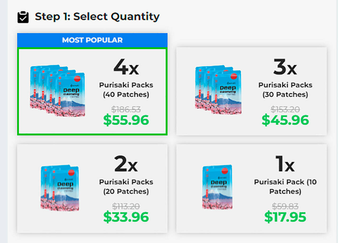 Here’s how pricing works when ordering Purisaki Deep Cleansing Foot Pads online today:
