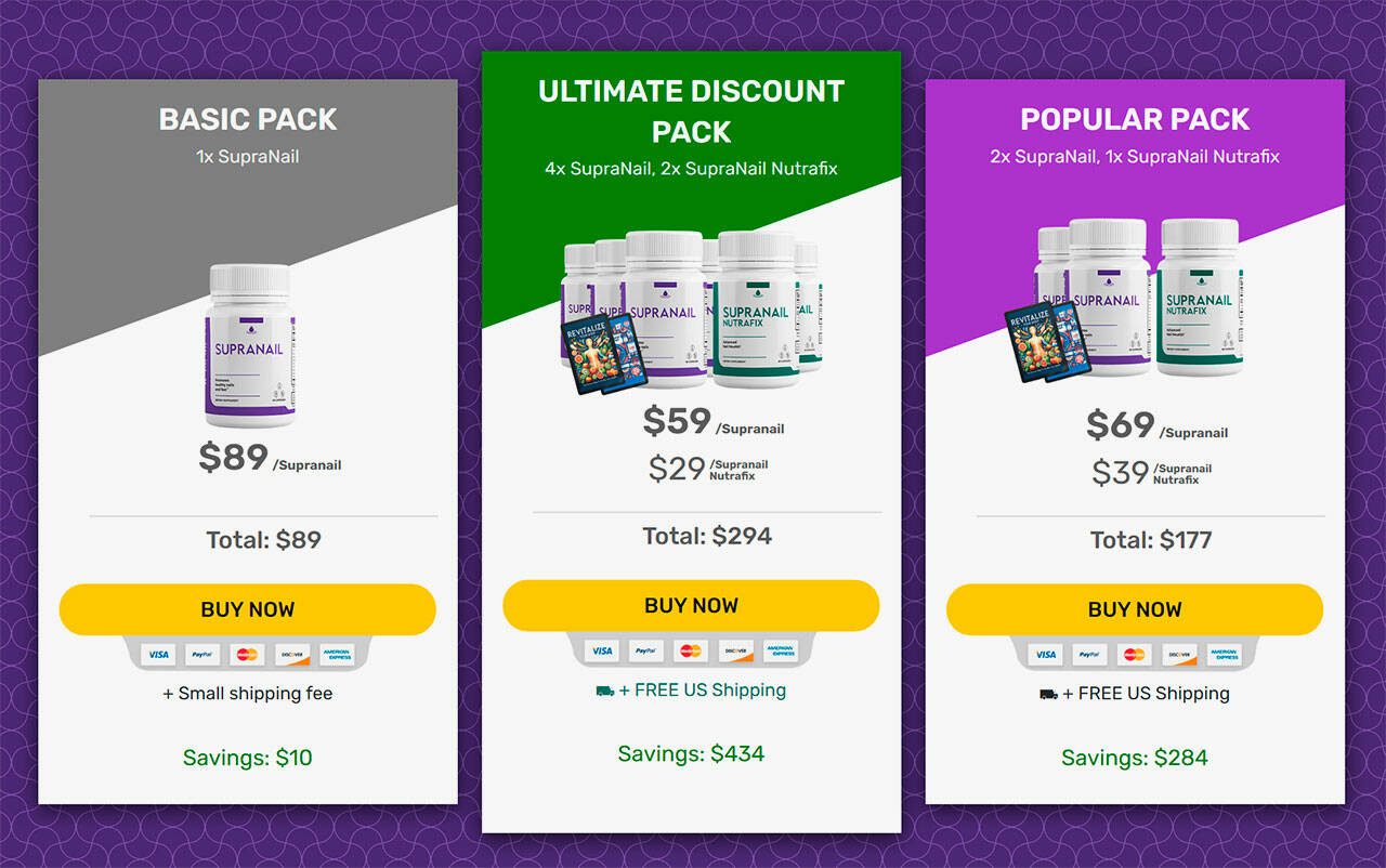 For those looking to experience the powerful benefits of SupraNail, three convenient pricing options are available to suit different needs and preferences. Whether you want to start with the Basic Pack for a single SupraNail bottle, opt for the Popular Pack with additional Nutrafix, or take advantage of the Ultimate Discount Pack for enhanced savings, there’s a choice for everyone. Each pack offers competitive pricing, ensuring you can enjoy the transformative results of SupraNail without breaking the bank.